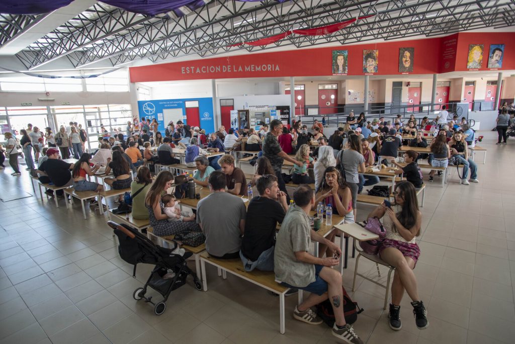 Además de los puestos de comida, se montó un patio de comidas con mesas y sillas y otro bajo techo en un pabellón de aulas.