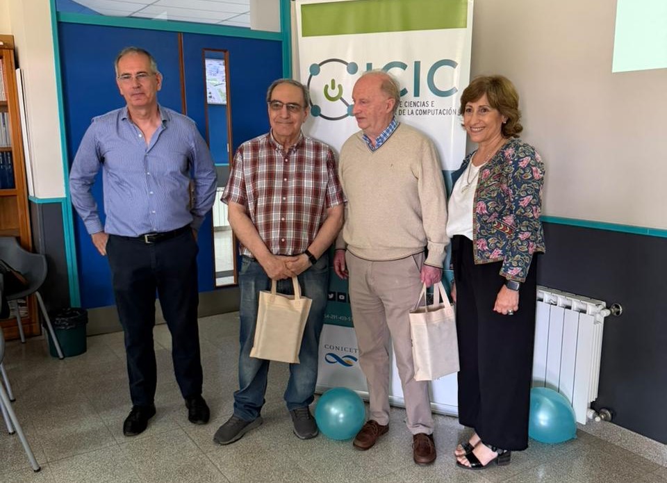 La jornada incluyó además el reconocimiento a dos integrantes históricos, Guillermo Simari y Jorge Ardenghi, por su rol fundamental en la construcción institucional y en el desarrollo de las bases científico-tecnológicas que hicieron posible el crecimiento del ICIC. El encuentro finalizó con la tradicional foto institucional y el corte de torta, en un clima de celebración y pertenencia.