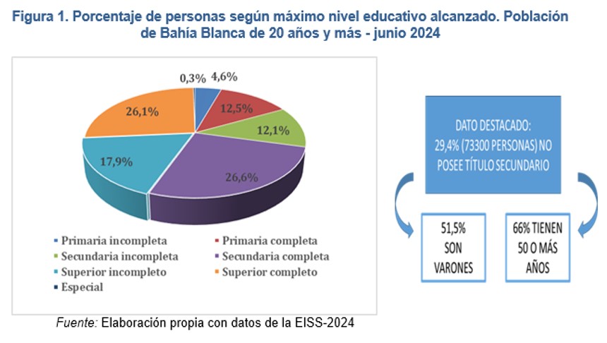 Un Informe de Educación en Bahía Blanca 2025 caracteriza a la población de la ciudad con relación a su educación y señala que el 29% de los adultos no completó el secundario, un nivel considerado indispensable tanto para el mundo de trabajo como para el ejercicio de la participación ciudadana.