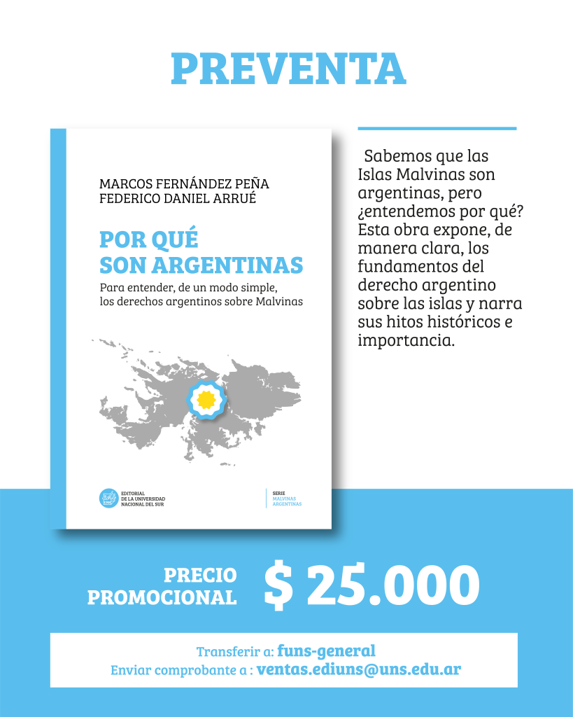 La Editorial de esta casa anunció la edición del libro “Por qué son argentinas. Para entender, de un modo simple, los derechos argentinos sobre Malvinas”, una obra de los autores Marcos Fernández Peña y Federico Daniel Arrué que propone acercar al público general los fundamentos del reclamo soberano argentino sobre las Islas Malvinas.
