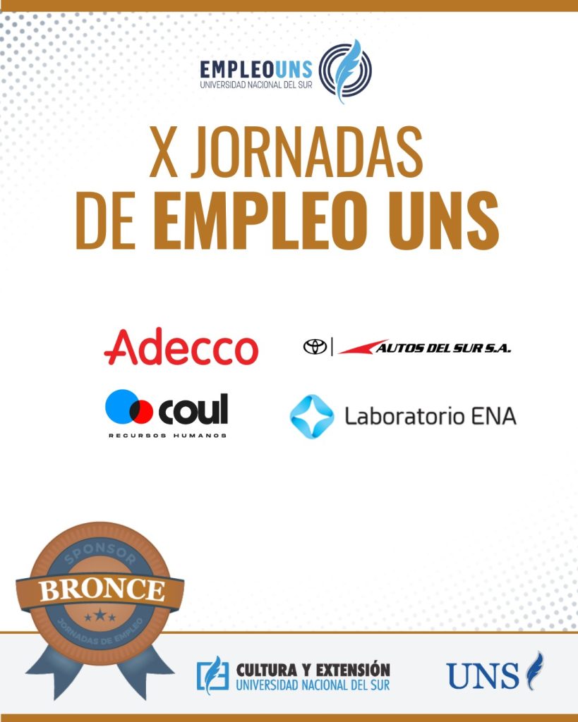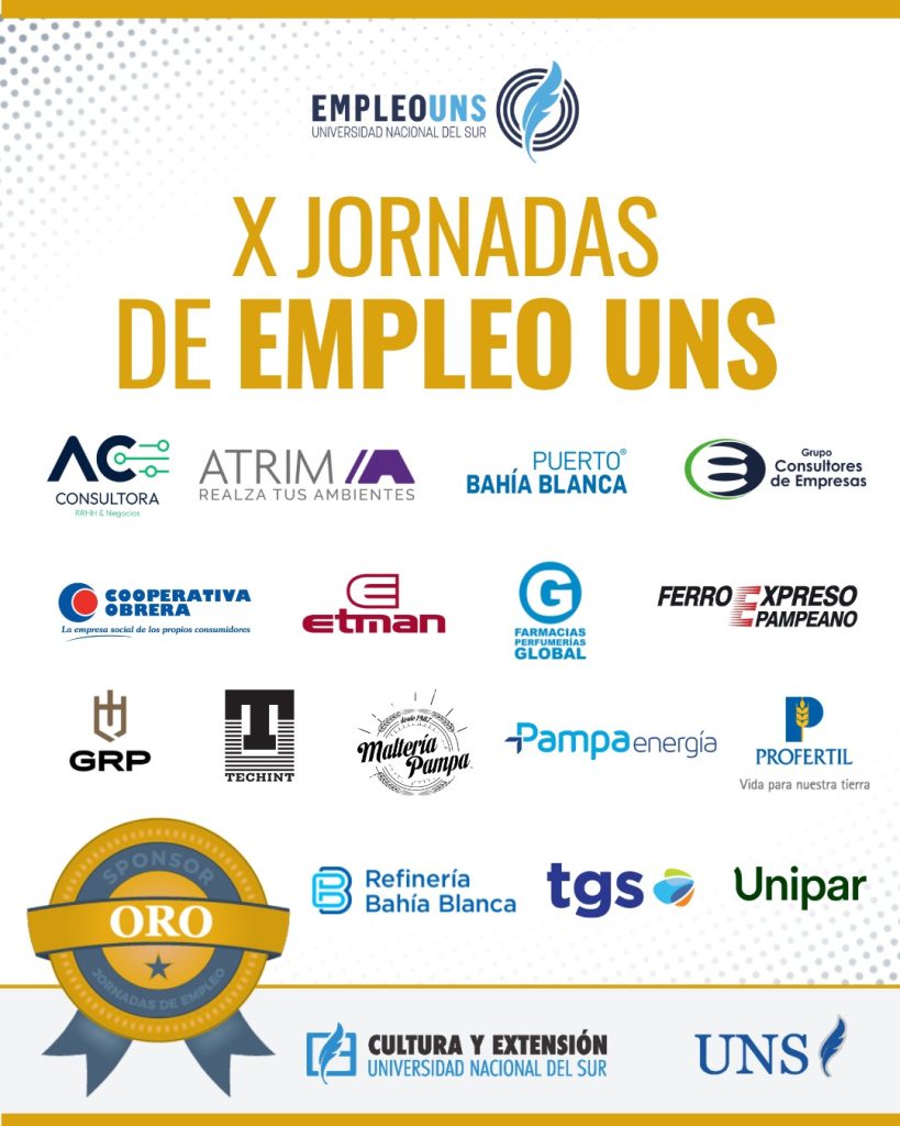 El próximo miércoles 15 de octubre se desarrollarán las X Jornadas de Empleo de la Universidad Nacional del Sur (UNS), una propuesta organizada por el programa Empleo UNS, dependiente de la Secretaría General de Cultura y Extensión Universitaria. Las actividades se realizarán desde las 10:00 en el Aula 14 C de Avenida Alem 1253.