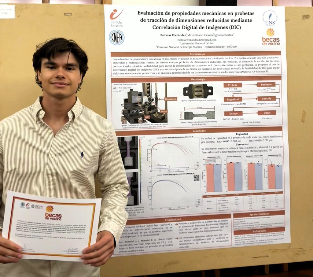 Baltasar Fernández fue becado para realizar un mes intensivo junto a otros 9 estudiantes de todo el país, en el Balseiro. Investigó sobre aportes en el estudio de las propiedades mecánicas de materiales en reactores experimentales de fusión.
